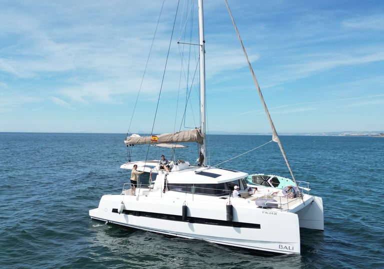 Enjoy an exclusive experience aboard our luxury Bali 4.0 catamaran in Marbella. Perfect for families, friends, or special occasions, with spacious areas to relax, sunbathe, and enjoy the sea in total privacy. Available by the hour, so you can choose the perfect duration for your experience. Capacity for up 10 guests